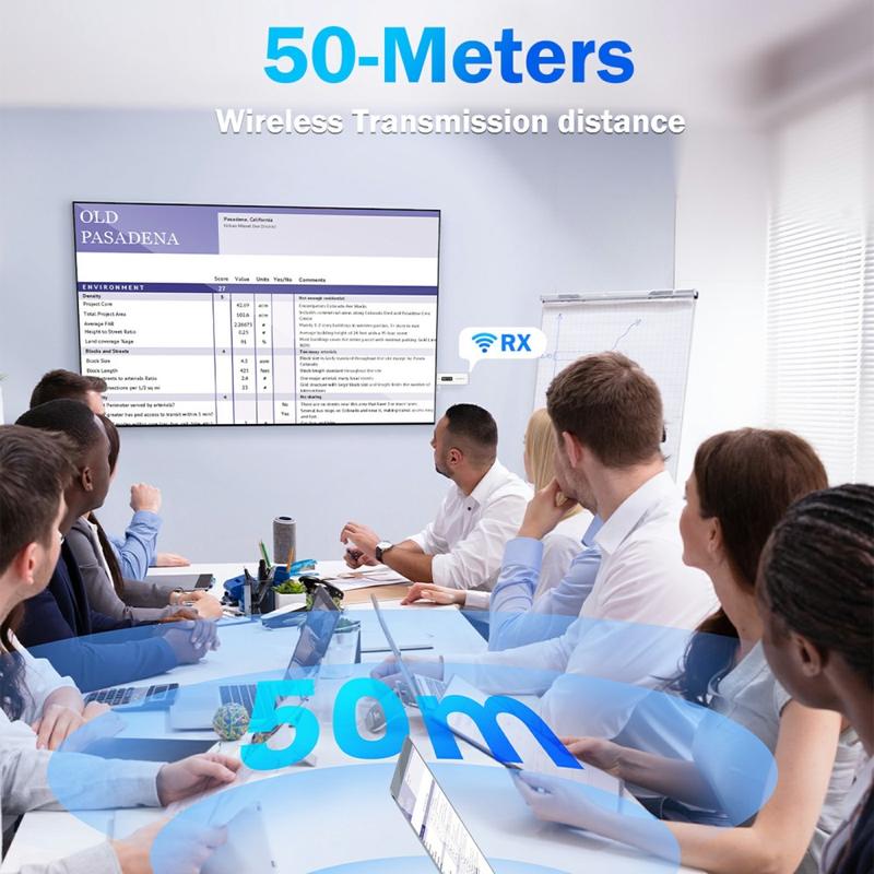 Ingen komplisert oppsett eller programvareinstallasjon er nødvendig. Det er bare å koble senderen og mottakeren til kompatible enheter og begynne å strømme umiddelbart, noe som gjør den ideell for rask utplassering på kontorer, i klasserom eller hjemme.