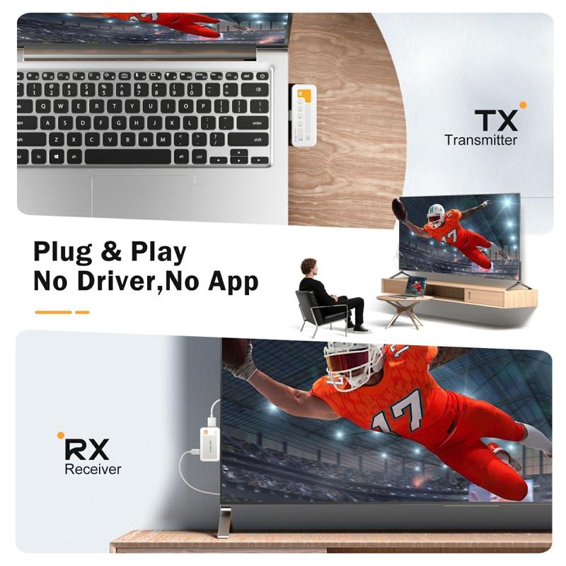 USB-C-senderen krever ingen ekstra driverinstallasjon eller kompleks konfigurasjon. Det er bare å koble til senderen og mottakeren, så er systemet klart til bruk i løpet av sekunder, noe som gjør det ideelt for profesjonelle og tidssensitive miljøer.