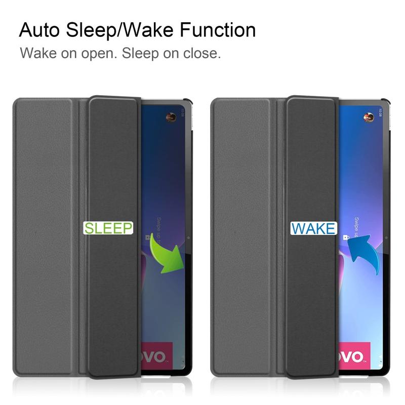 Enten du ser på en video eller tegner med pekepennen din på Lenovo Tab P12 Pro, holder foliedekslet det i din ideelle vinkel, og gir en mer komfortabel og produktiv opplevelse. Den smarte hvilemodus-funksjonen slår og av automatisk skjermen når du åpner og lukker klaffen.