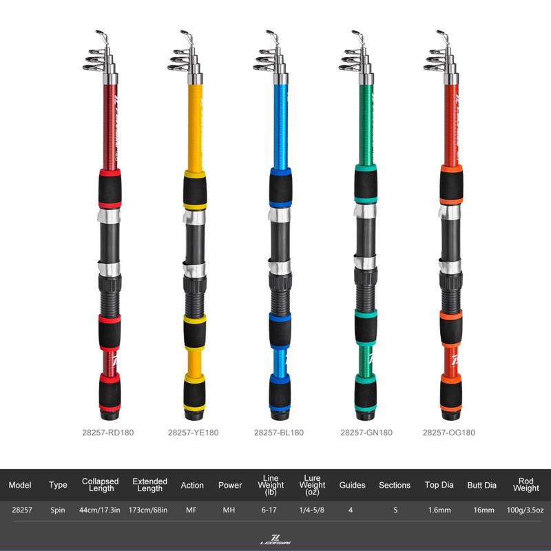LEO 28257 1.73m teleskopisk fiskestang i glassfiber - ultralett mini-reisestang