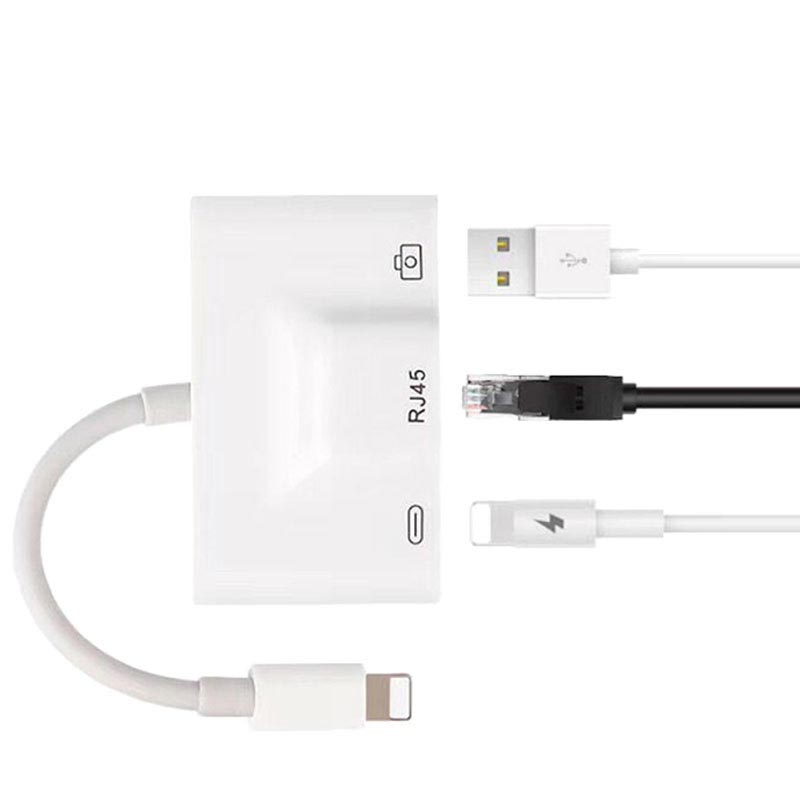 3-i-1 Lightning 8-pin/RJ45 Ethernet LAN Nettverksadapter med USB 2.0-/Lightning 8-pin-port