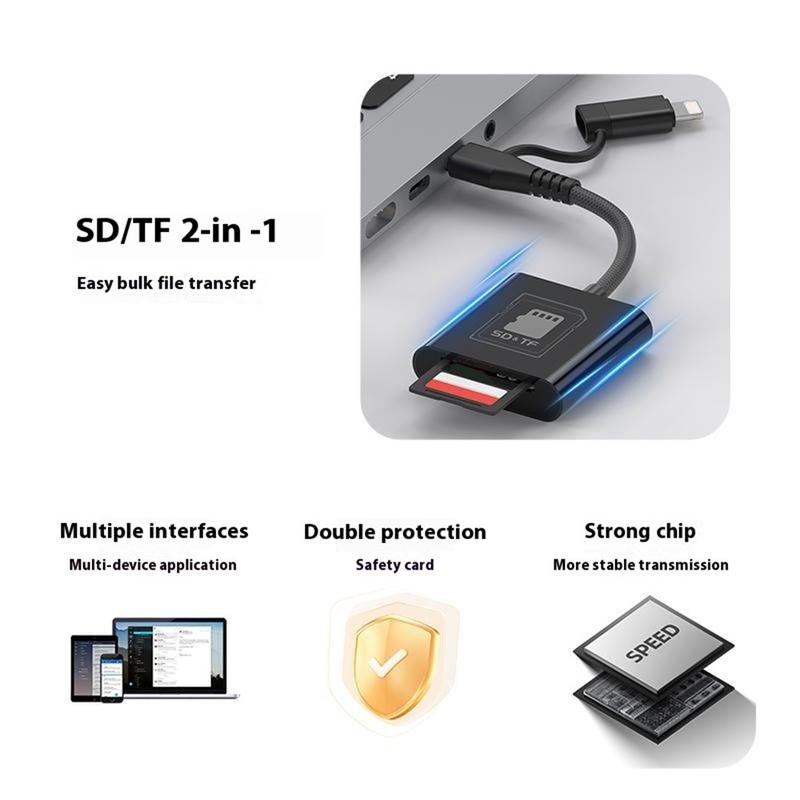 Lightning/Type-C-kortleser for TF/SD-kort - kompatibel med iOS og Android