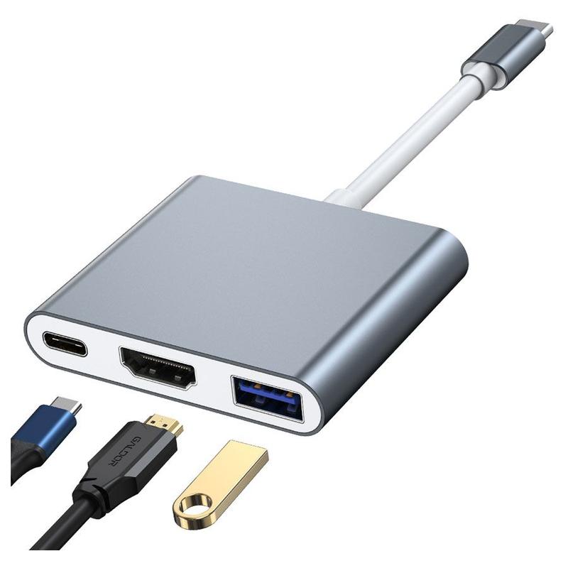 - Funksjoner: 3-i-1-adapter med USB-C, 1 x USB-C Pass through med opptil 87 W, 1 x HDMI 4K 30 Hz, 1 x USB-A-port for tilbehør som mus eller tastatur