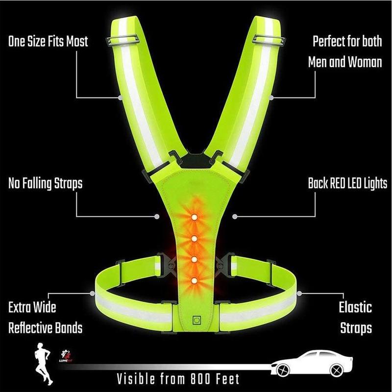 Vesten har tre lysmoduser - raskt blinkende, sakte blinkende og fast lys - slik at du kan velge den synlighetsstilen som passer best til omgivelsene dine. Den justerbare one-size-designen gjør den enkel å bruke over sportsklær, jakker eller hverdagsklær, mens den vanntette konstruksjonen gjør at den tåler vått vær og uforutsigbare utendørsforhold.