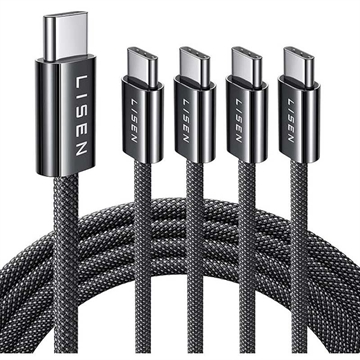 Lisen USB-C til USB-C kabelsett - 60W, 3A, hurtiglading med strømforsyning, flettet nylon, flere lengder