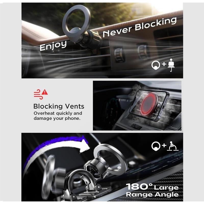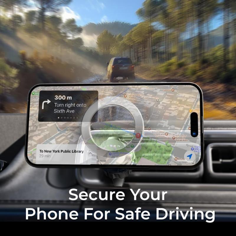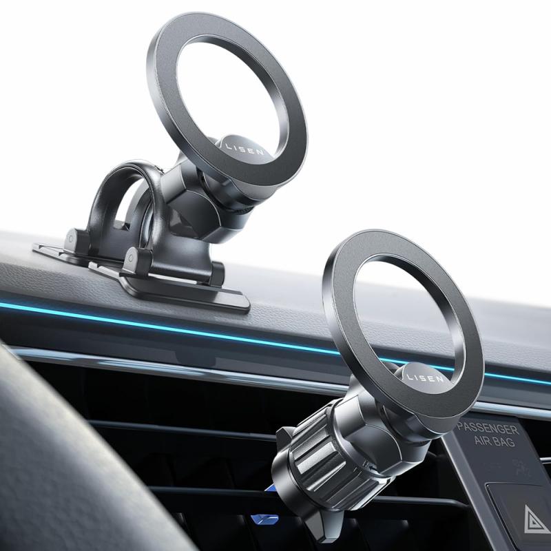 Lisen MagSafe-kompatibel magnetisk bilholder - montering på ventil og dashbord, 360° kuleforbindelse, varmebestandig lim