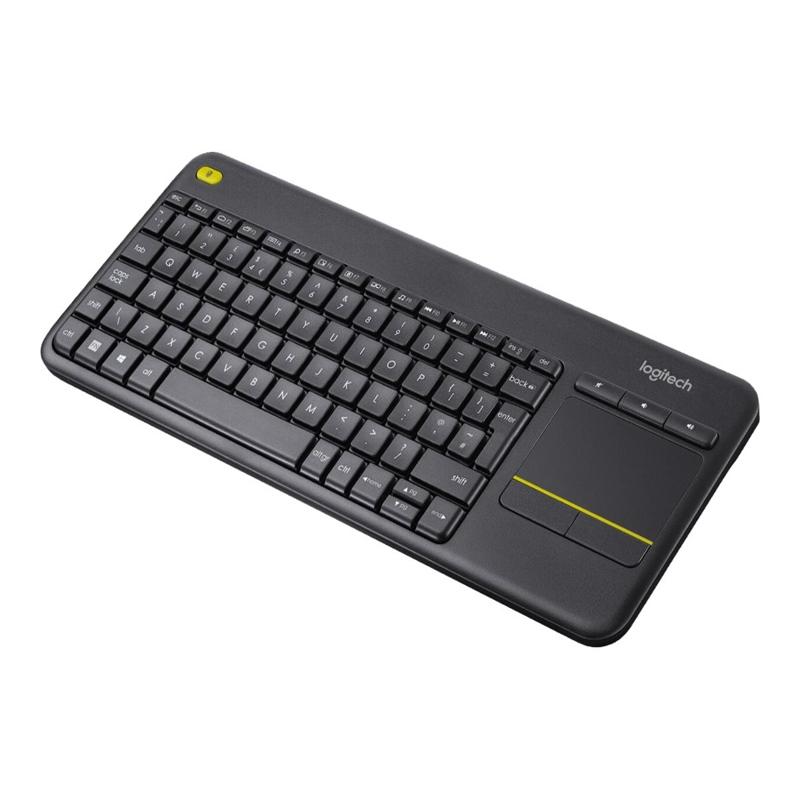 Trådløs Touch Keyboard K400 Plus er et Tastaturoppsett i full størrelse og pekeplate i en kompakt størrelse. IncKlokkeve-taster er ideelle for berøringsskrivere, og det myke tastetrykket gjør dette til et stillegående Tastatur. Berøringsplaten i full størrelse gir deg de velkjente rulle- og navigasjonsbevegelsene. Med venstre- og høyreklikk-knappene under styreplaten og volumkontrollknappene over, er kontrollen lett tilgjengelig. For tohåndskontroll, vanligvis brukt av de som liker å bruke tomlene for å navigere, er en venstre museklikk-knapp plassert øverst til venstre på Tastaturet – naviger med høyre hånd, velg med venstre.