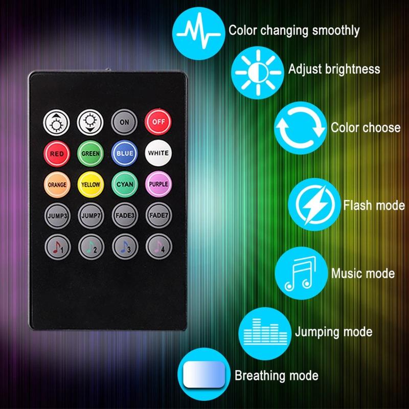 Hvis du ønsker å heve bilens atmosfære med minimal innsats, tilbyr disse LED-stripene den perfekte blandingen av bekvemmelighet, allsidighet og stil. Den lydaktiverte modusen gir liv til musikken din, mens den trådløse fjernkontrollen og de fleksible strømalternativene forenkler installasjon og tilpasning. Med flerfarget belysning, justerbar lysstyrke og selvklebende strips kan du enkelt forvandle bilens interiør til et dynamisk, personlig rom.