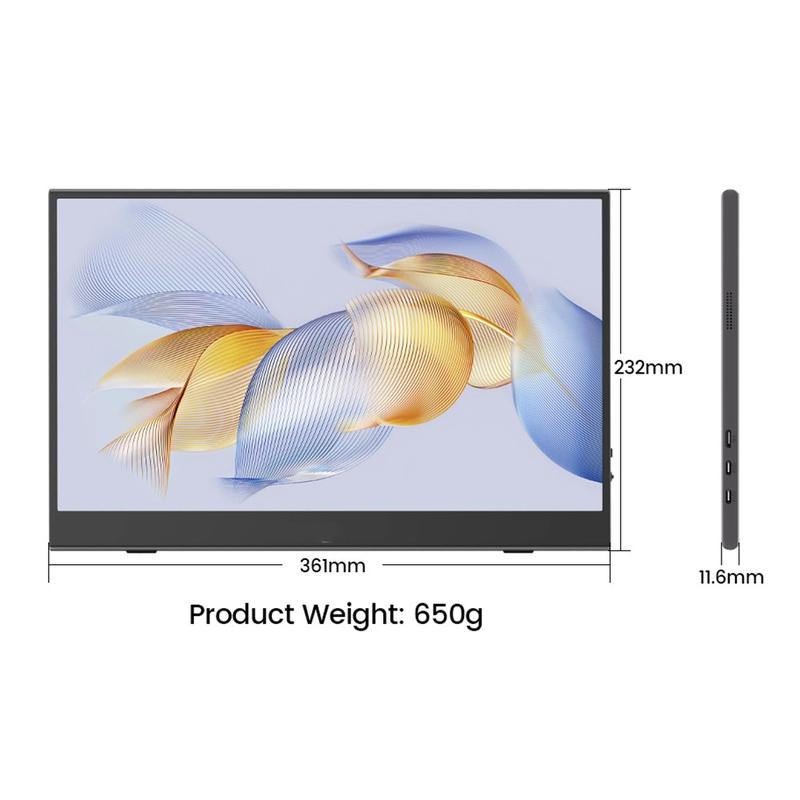 Bærbare skjermer som M156F04 bruker IPS-teknologi, som gir 178° brede visningsvinkler og levende fargenøyaktighet - noe som sikrer et konsekvent, naturtro bilde uansett hvor du sitter.