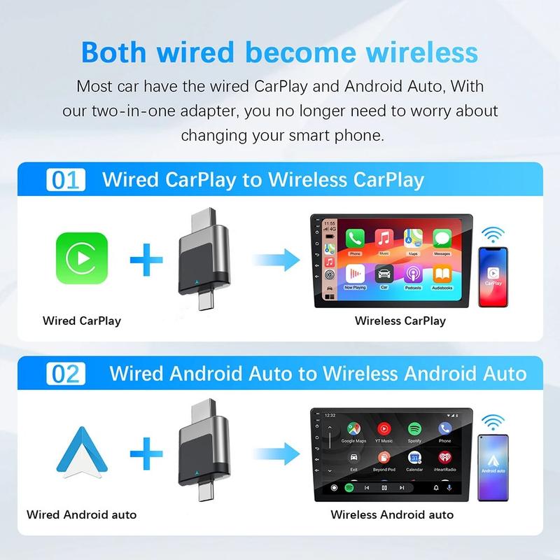 M28 2-i-1 trådløs CarPlay/Android Auto AI-boks - Type-C/USB-adapter for kablede systemer