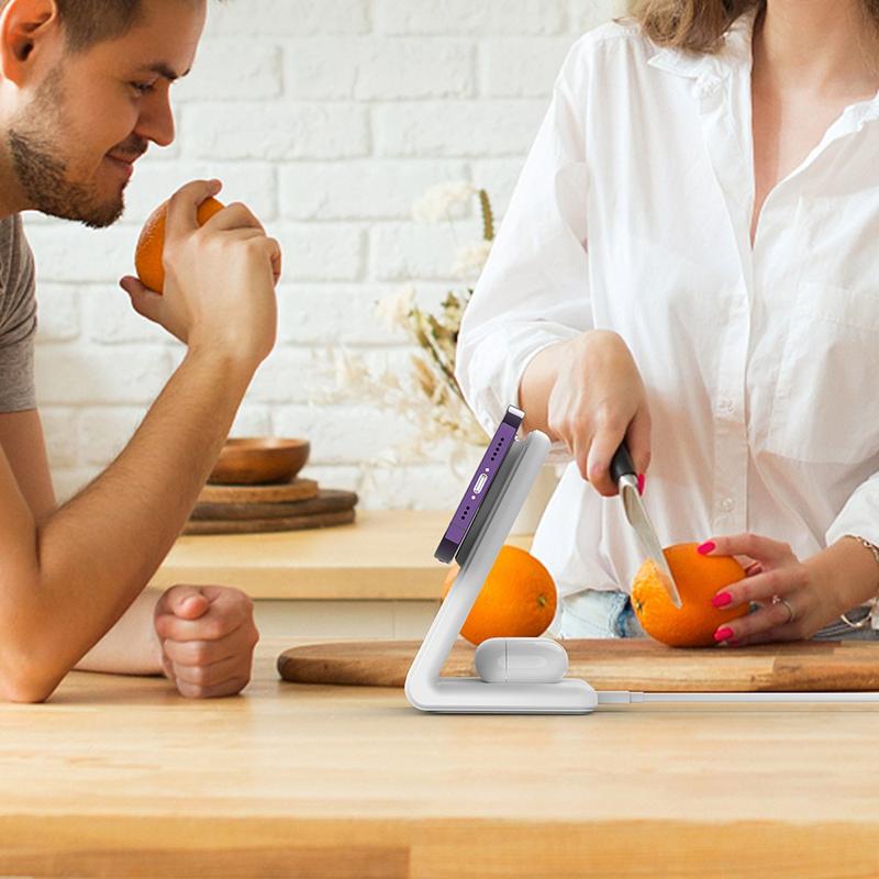 Bruk telefonen håndfri mens den lades - ideelt for videosamtaler, se på innhold eller lese varsler. Den ergonomiske vertikale utformingen holder skjermen synlig og arbeidsområdet ryddig.