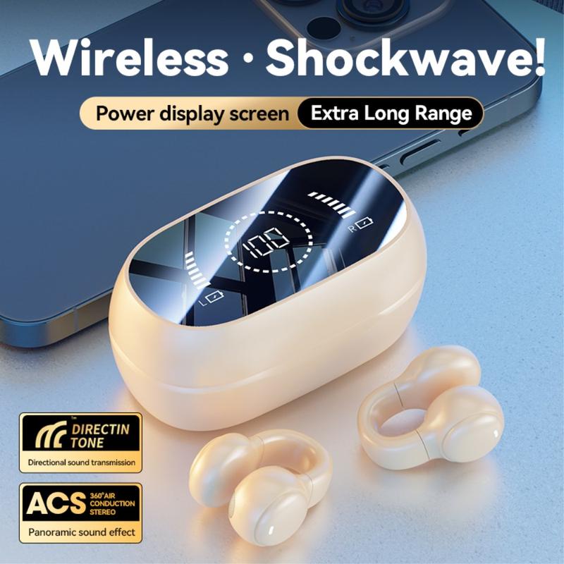 M47 Earclip Bone Conduction Trådløs hodetelefon med mikrofon Bluetooth 5.3 Gaming Headset Støyreduksjon Sportshøretelefon - Nude