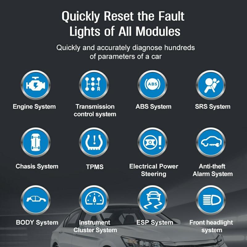 - Fullstendige systemskanninger går utover motorens ECU, og hjelper deg med å oppdage problemer med ABS-hjulsensor eller kollisjonsputekretser som generiske lesere kan overse