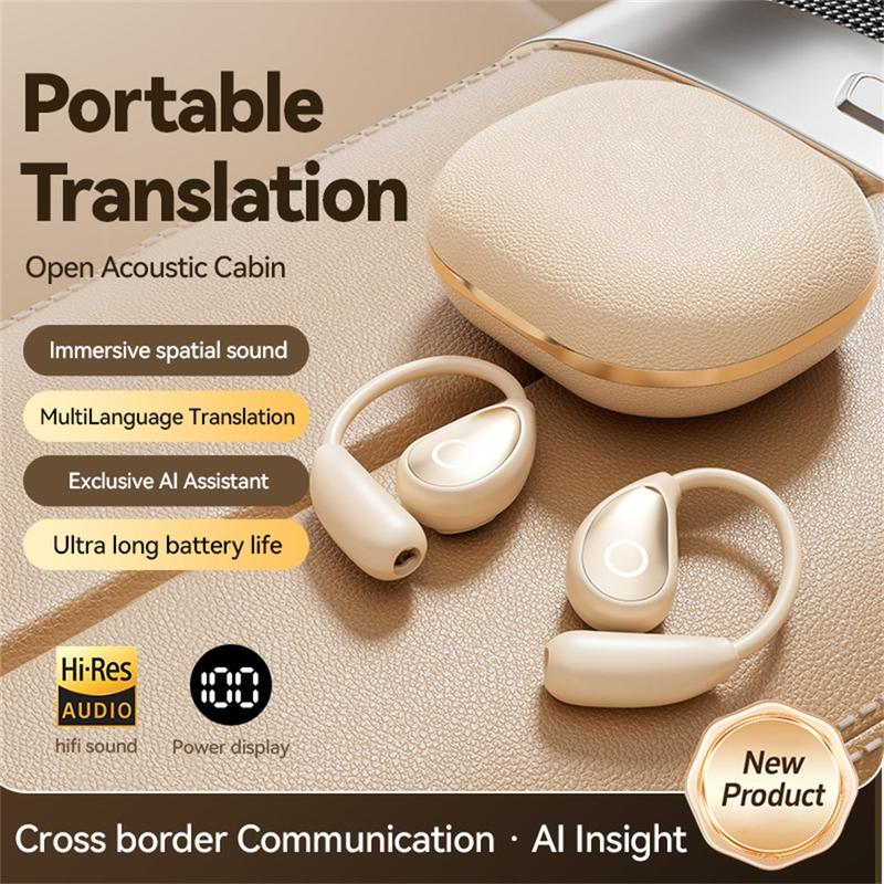 M95 Sports-øretelefoner med 144-språklig AI-oversetter - Bluetooth 5.4-øretelefoner med ørekrok, digital batteridisplay