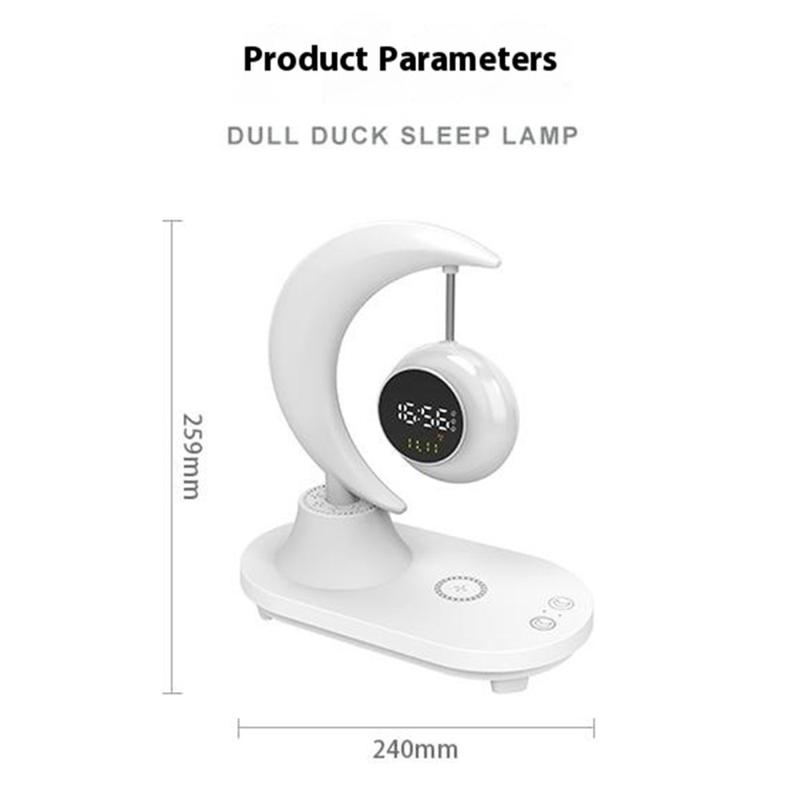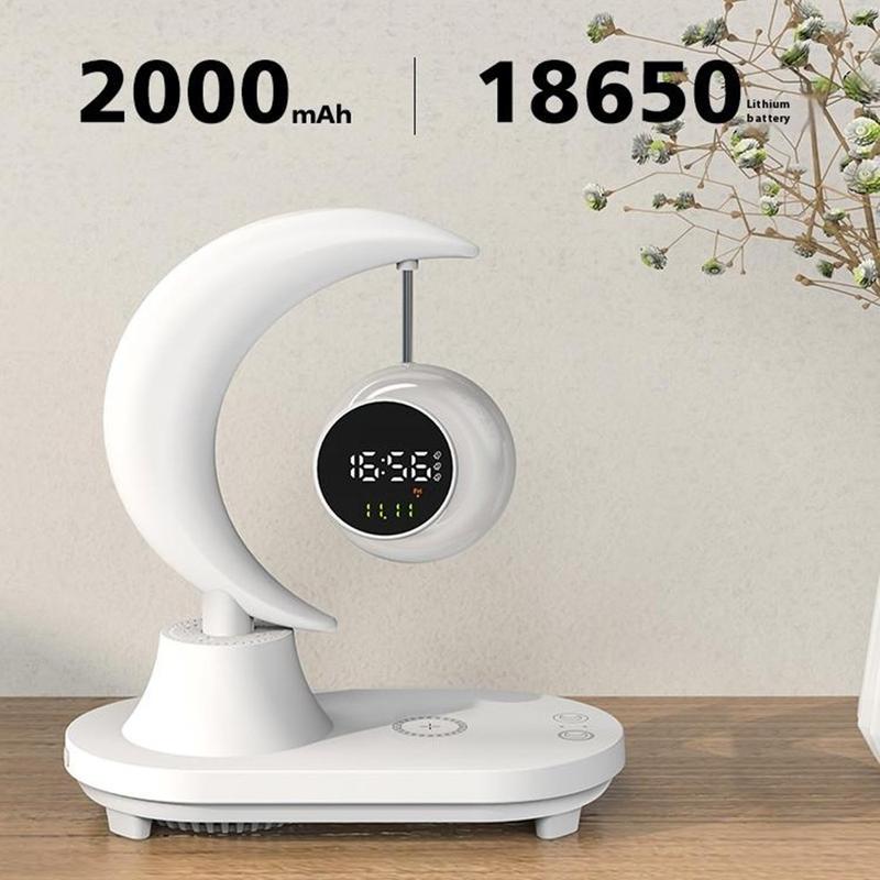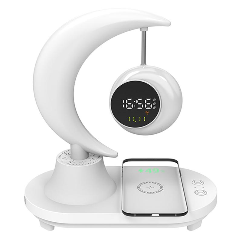 Måneformet multifunksjonell Bluetooth-høyttaler med vekkerklokke, sengelampe med fargerikt omgivelseslys, 15 W trådløs lader - høyttalereffekt: 10 W