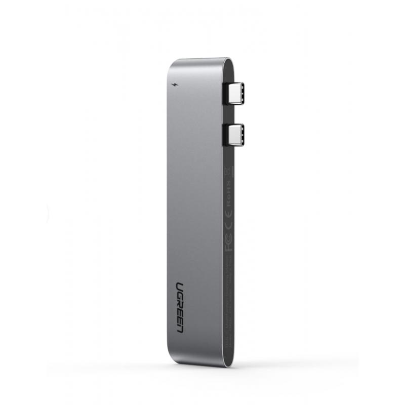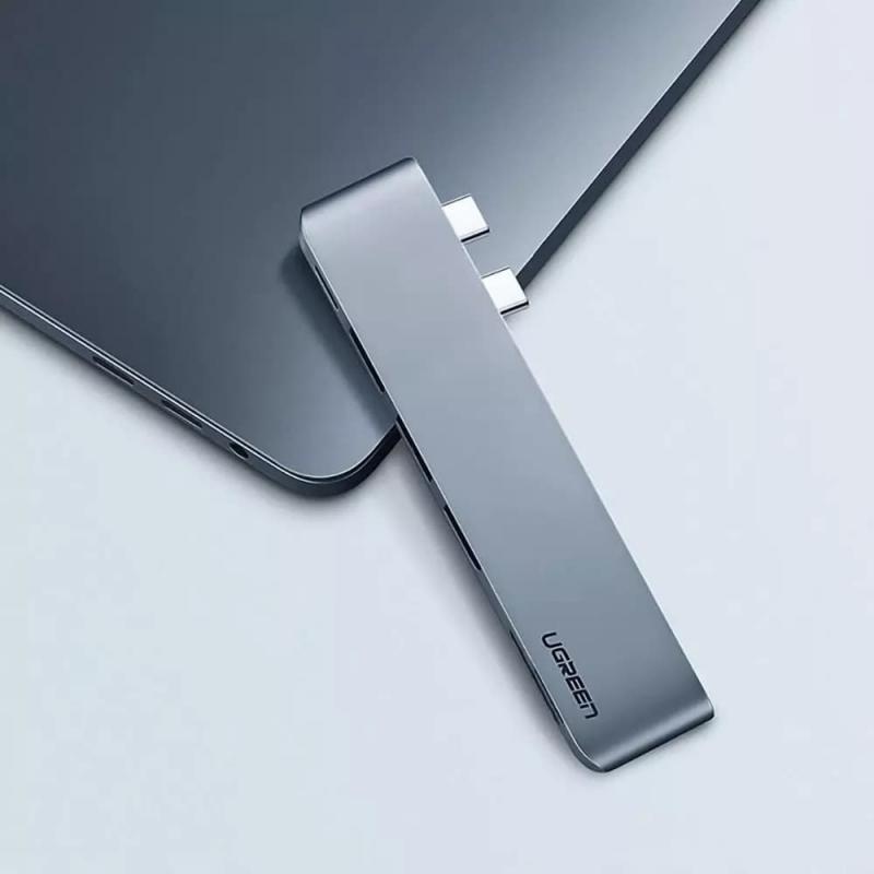 Ugreen CM251 6-i-1 USB-C-nav for MacBook Pro, MacBook Air - 100 W PD-gjennomgang, 3× USB-A 5 Gb s, SD/microSD-kortspor, Space-Grey Aluminium