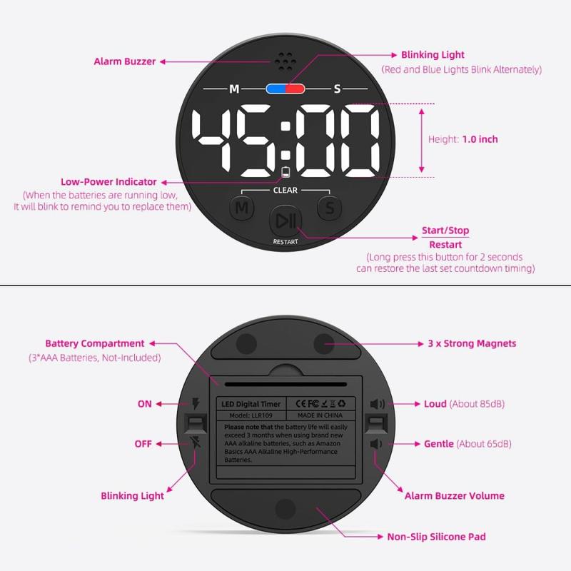 En liten enhet erstatter telefonapper som tapper batterier og samler mel, og gir deg taktil kontroll, høyere varsler og umiddelbar lesbarhet fra andre siden av rommet. Den magnetiske puten holder benkeplaten ren, mens AAA-strømforsyningen og det robuste ABS-skallet betyr mange års pålitelig service - noe som sparer både tid og penger i forhold til billige engangsklocker.