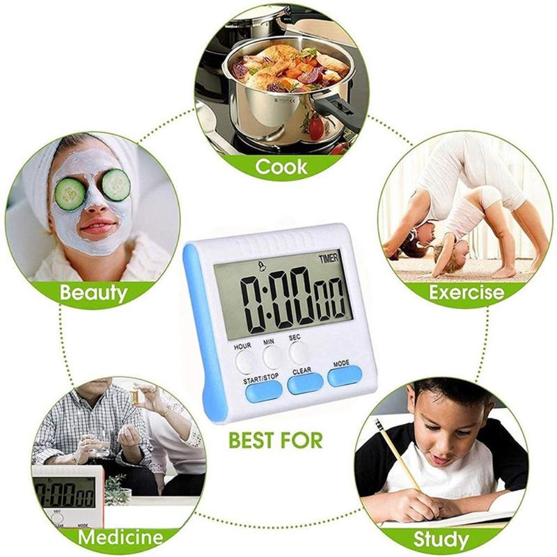 Magnetisk stor LCD digital kjøkkentimer - 24-timers opp-/nedtellingstimer med høy alarm og sammenleggbart stativ