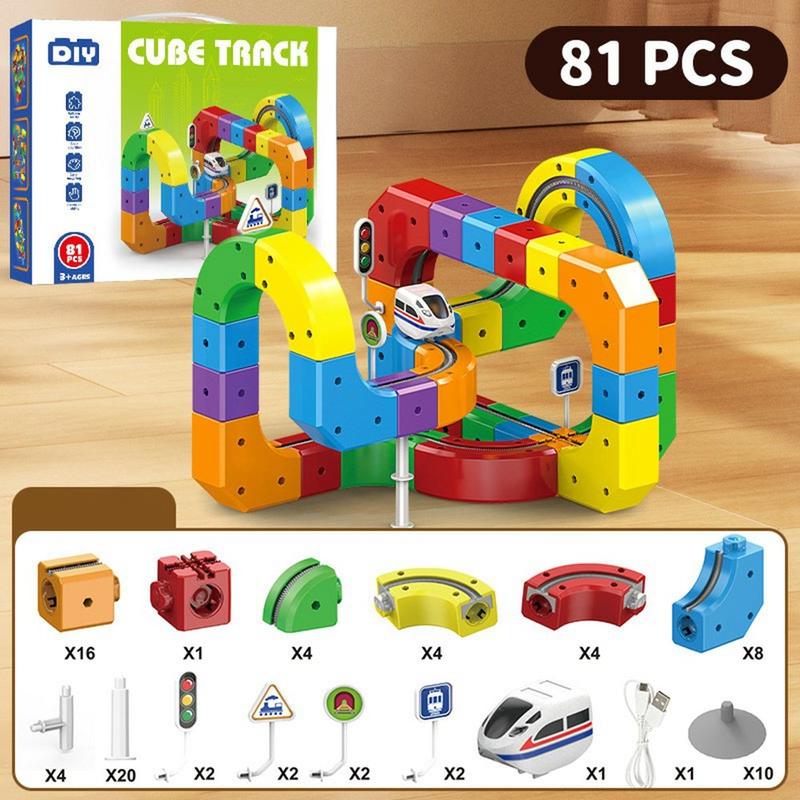 Magnetisk togbanesett med 81 deler - pedagogisk STEAM-byggelek med oppladbart minitog