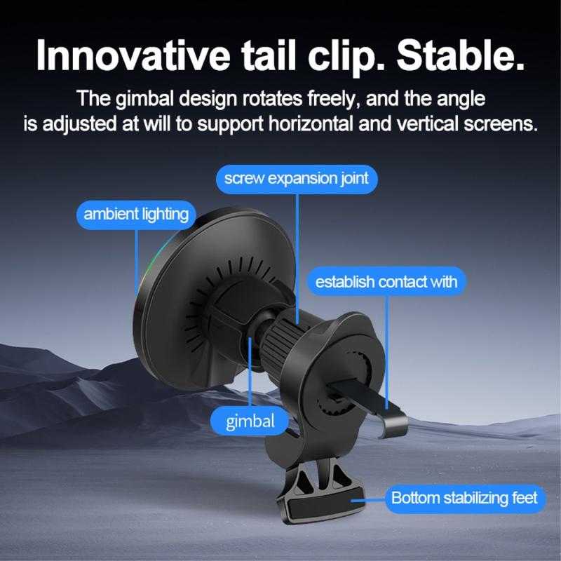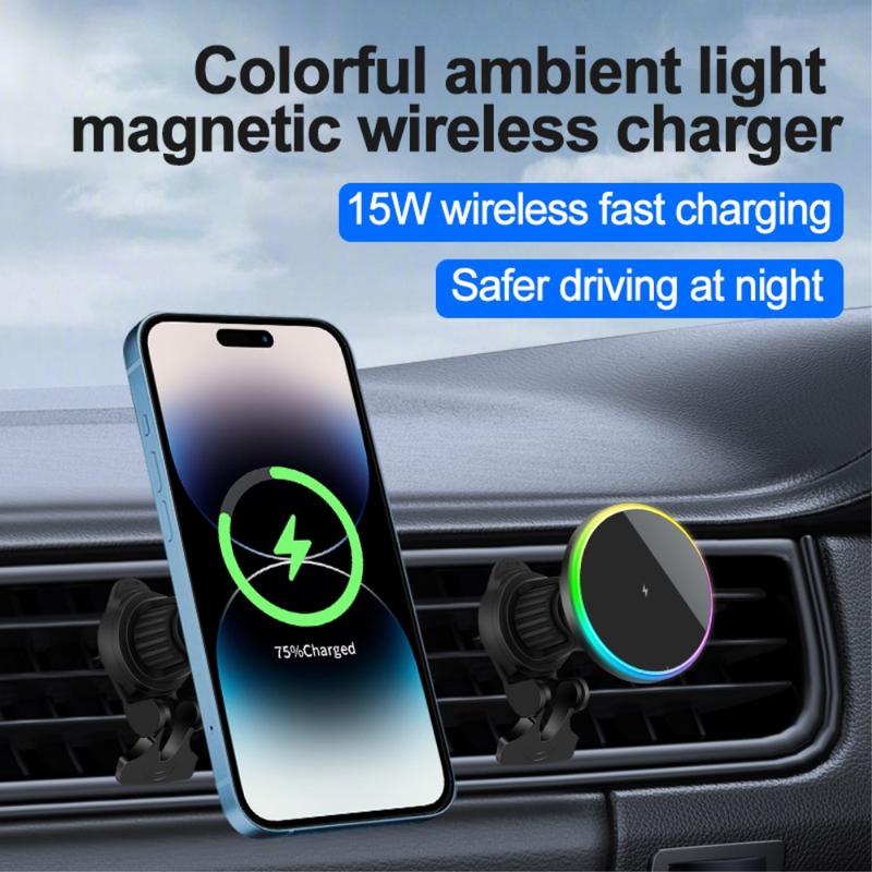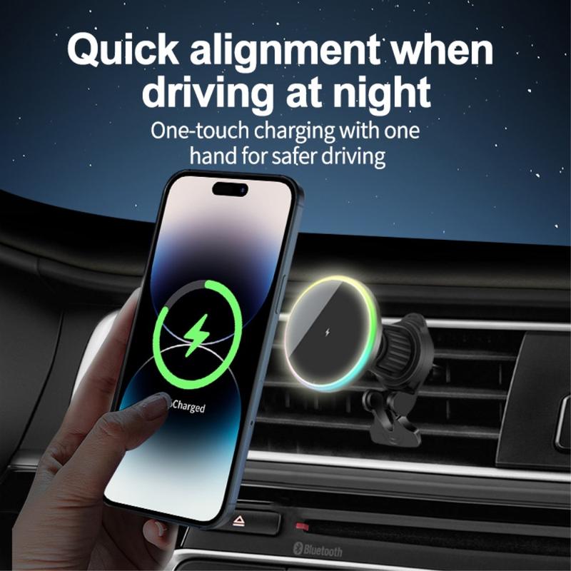 Magnetisk trådløs lader/luftventilholder for bil med RGB OJD-121
