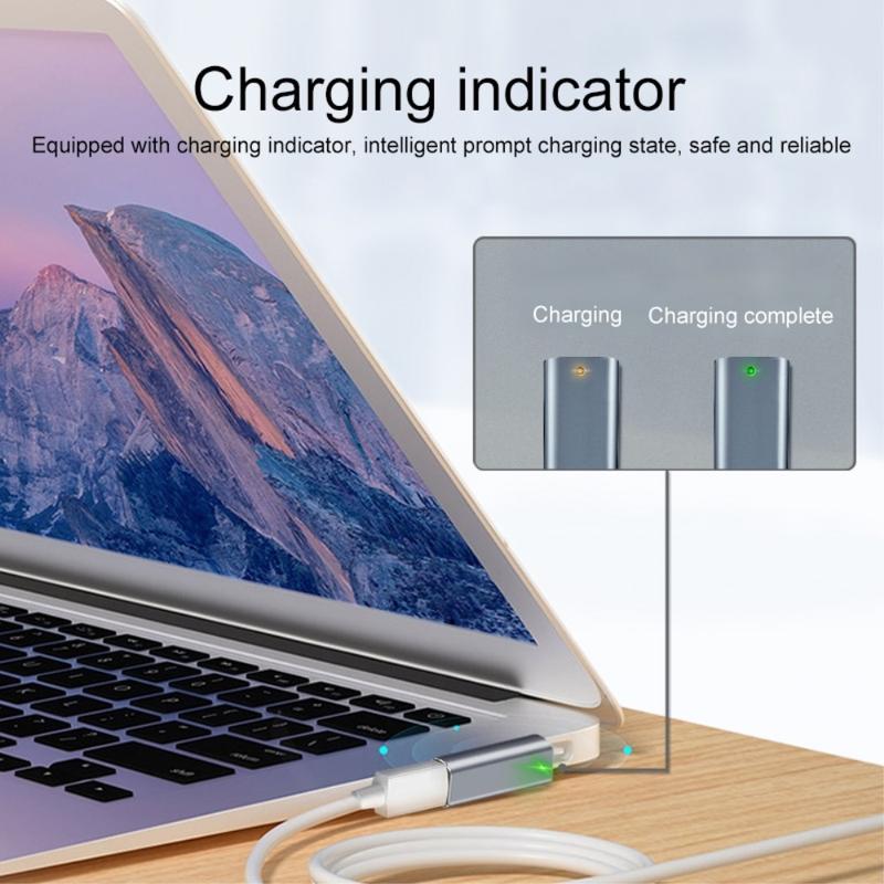 Det magnetiske grensesnittet sørger for en sikker tilkobling som motstår utilsiktet frakobling, noe som bidrar til å beskytte den bærbare datamaskinen under lading. En integrert ladeindikator viser tydelig ladestatus, noe som gir trygghet og gjør det enkelt å holde oversikt.