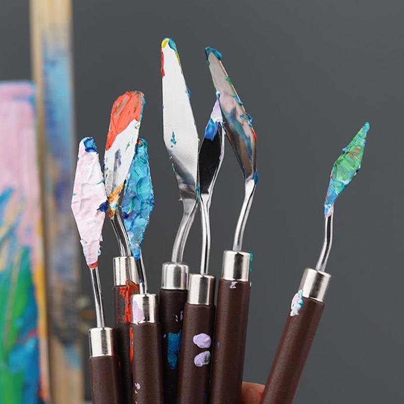 7 forskjellige oljemalerskraper i ett sett, praktisk å bruke