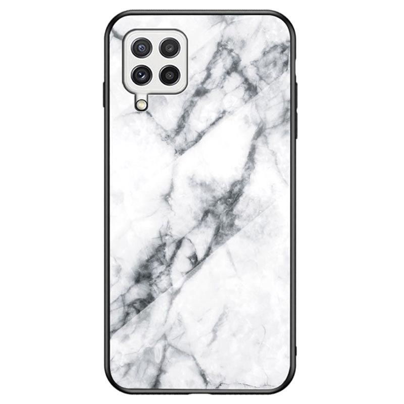Marble Series Samsung Galaxy A22 4G Herdet Glass Deksel - Hvit