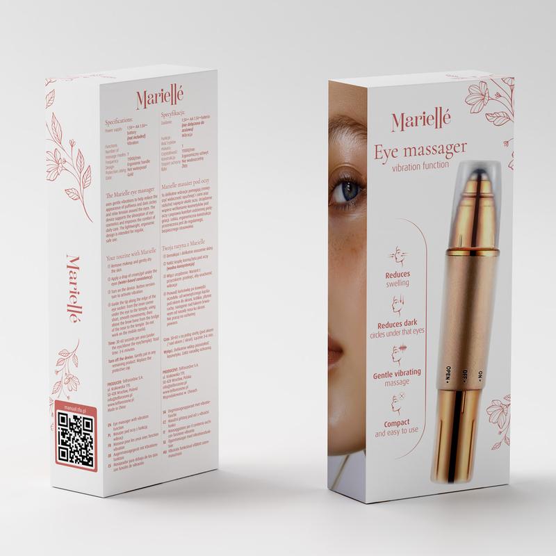 Marielle Eye Ball er designet for den delikate huden rundt øynene, der tegn på tretthet ofte kan vises først. Kombinasjonen av vibrasjon og kjøling bidrar til å støtte mikrosirkulasjonen og lymfedrenasjen, noe som kan hjelpe området under øynene til å se mindre oppsvulmet og mer uthvilt ut. Den hjelper også til å fordele øyekrem eller serum jevnere, noe som gjør påføringen av produktet jevnere og støtter opptaket av aktive ingredienser.