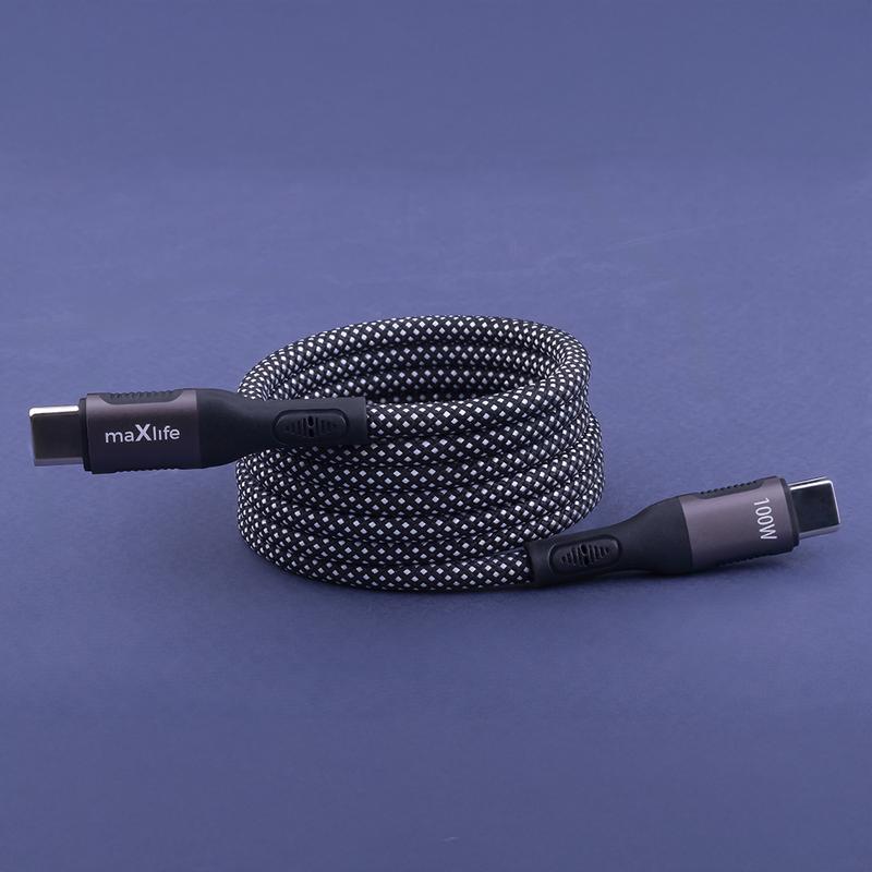 Maxlife MXUC-11 magnetisk USB-C til USB-C-kabel - 1m, 100W hurtiglading, nylonflettet, forsterkede kontakter