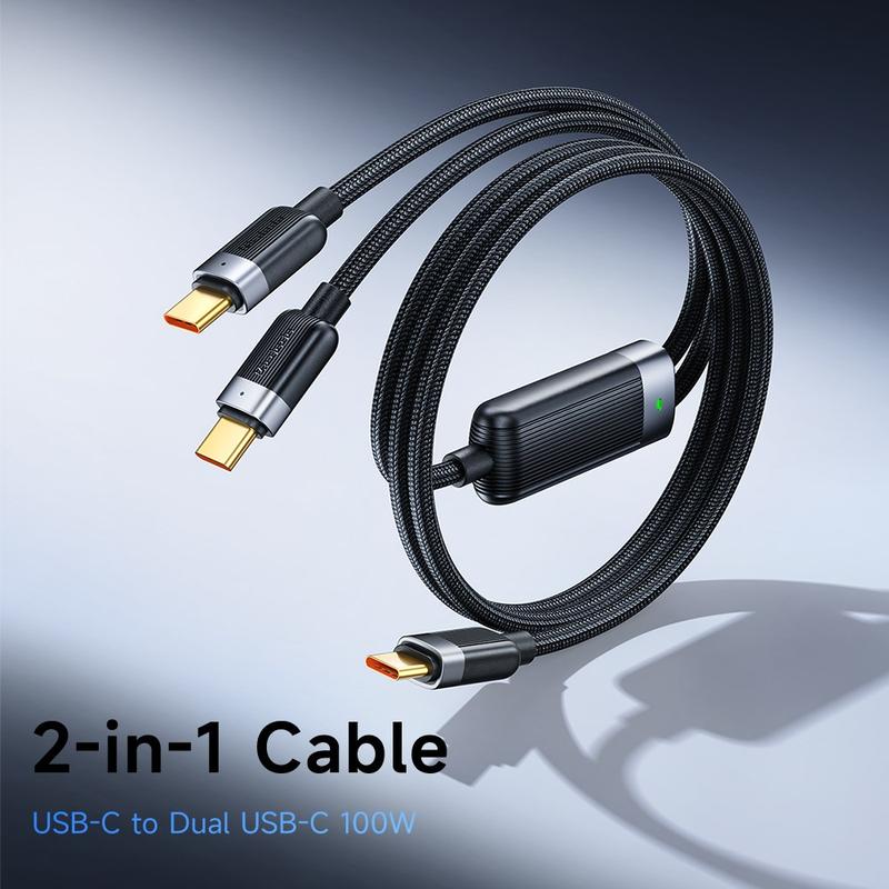 Er du lei av å sjonglere med separate ledninger til den bærbare datamaskinen og telefonen? Denne tohodede MCDODO-kabelen effektiviserer livet på farten. To USB-C-kontakter forgrener seg fra en enkelt, robust, flettet kappe, noe som gir deg friheten til å hurtiglade to enheter eller drive én kraftpakke med full 100 W-spesifikasjon - uten adaptere, uten problemer.