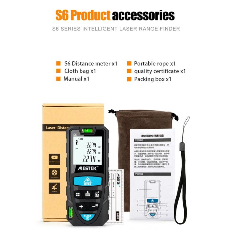 Få nøyaktige målinger raskt og enkelt med MESTEK S6 laseravstandsmåler. Denne multifunksjonelle enheten er designet for å måle opptil 50meter og kan skilte med sanntidsmåling av vinkler, en ultraklar skjerm og pålitelig ytelse for hverdagslige bygge-, renoverings- og gjør-det-selv-behov. MESTEK S6 har åtte målemoduser, 20 dataregistreringsspor og en dempefunksjon for støysensitive miljøer, og den effektiviserer hele måleprosessen uten å gå på akkord med nøyaktighet eller brukervennlighet.