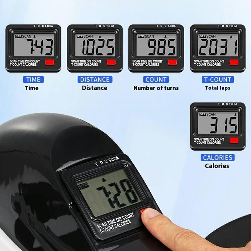 Treneren er utstyrt med en tydelig LED-skjerm som viser tid, repetisjoner og estimert kaloriforbruk. Dette hjelper deg med å spore fremgangen umiddelbart og opprettholde sunne, strukturerte treningsøkter.