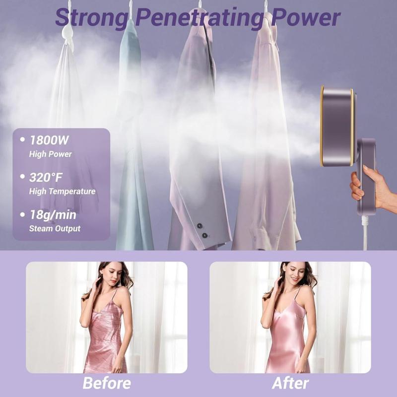- Kraftig mikrotrykksdamp på 1200W - kontinuerlig, tett damp som glatter fibrene raskt uten å bløte opp stoffet.