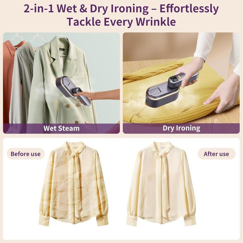 Bytt ut klumpete strykebrett med rynkefrie resultater på få minutter. Denne kompakte håndholdte plaggdamperen kan veksle mellom hengende og strykejernsmodus, leverer presisjonsdamp gjennom en intelligent LED-skjerm og kan enkelt pakkes med på forretningsreiser eller helgeturer.