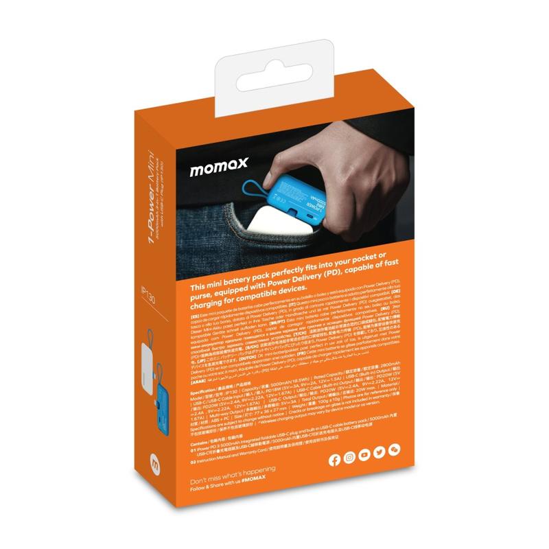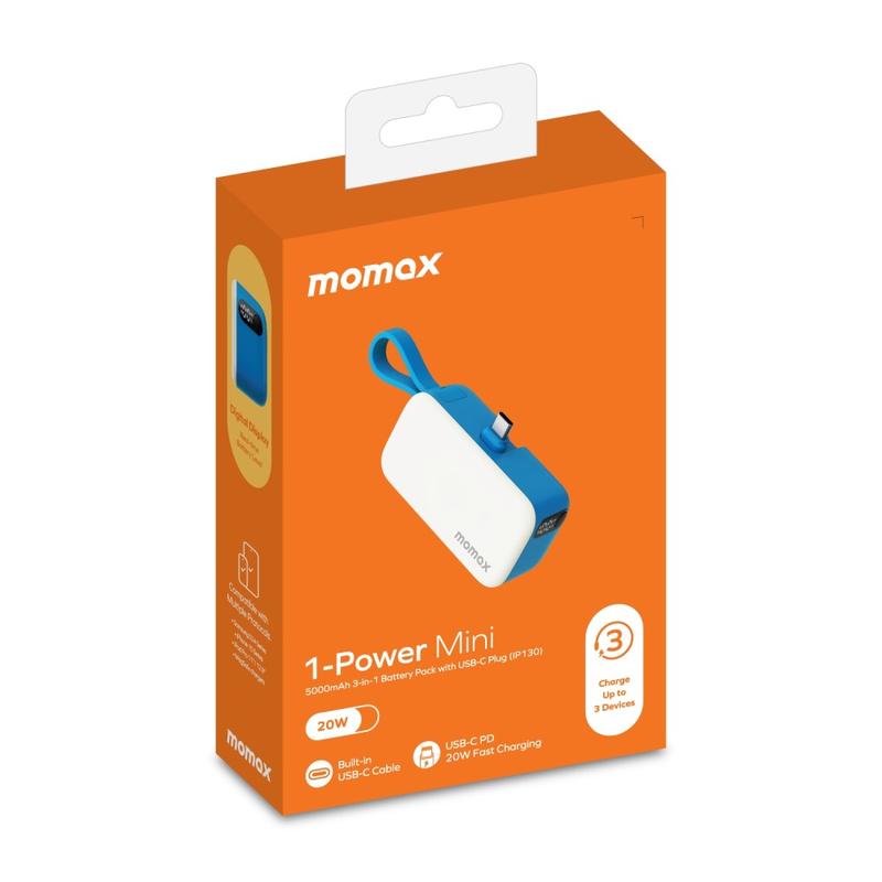Momax 1-Power Mini Pop Art 5000 mAh kraftbank / bærbar lader med USB-C-kontakt, USB-C-kabel, USB-C-port - 20 W