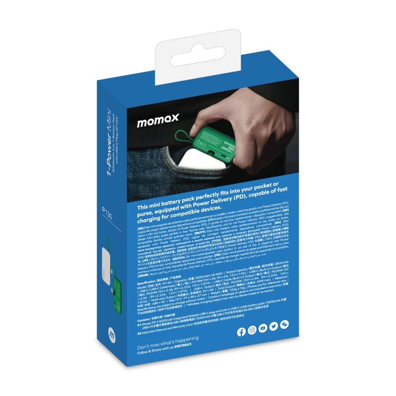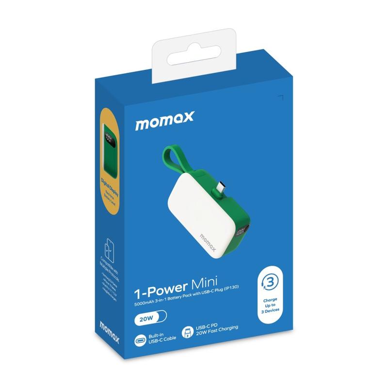 Momax 1-Power Mini Pop Art 5000 mAh kraftbank / bærbar lader med USB-C-kontakt, USB-C-kabel, USB-C-port - 20 W