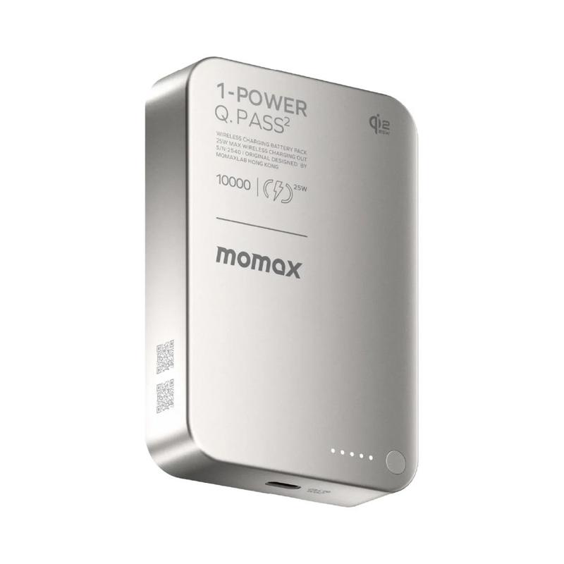 Få rask strøm og hold deg kabelfri med MOMAX 1-Power Q.Pass2 Qi2.2 magnetisk trådløs strømbank. Den er laget for iPhone 12-17-serien, festes magnetisk for et sikkert grep og begynner å lade umiddelbart - perfekt for pendling, reiser og travle dager. Med Qi2 25 W trådløs utgang (MPP) leverer den effektiv magnetisk lading, mens USB-C PD-porten på opptil 30 W gir deg et høyhastighets kablet alternativ for telefoner, nettbrett og andre kompatible enheter. Kapasiteten på 10 000 mAh hjelper deg med flere ladinger, og den førsteklasses glass- og aluminiumskonstruksjonen med sklisikre kanter gjør at den føles like bra som den fungerer.