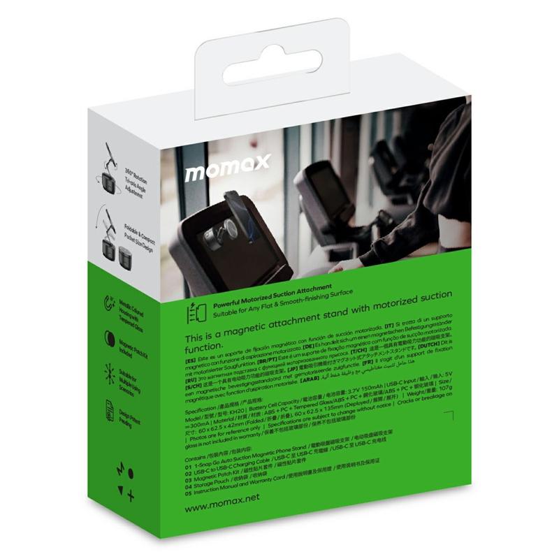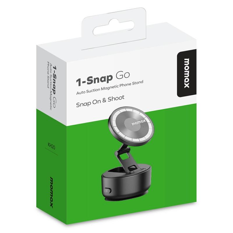 Momax KH20 1-Snap Go elektrisk magnetisk telefonholder - motorisert automatisk sugekoppfeste, treaksial sammenleggbar holder med 360° rotasjon, USB-C-oppladbar