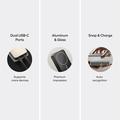 Momax Q.Mag X2 20000mAh Magnetic Power Bank er den ultimate strømløsningen når du er på farten. Den ultratynne, kompakte designen gjør at den enkelt får plass i lommen eller vesken, noe som gjør den til en perfekt følgesvenn på reisen. Med sine to USB-C-utganger og maks 15 W trådløs lading sørger denne powerbanken for rask og effektiv lading av både iOS- og Android-enheter. Den elegante aluminiumslegeringen og den herdede glasskonstruksjonen er ikke bare slitesterk, men gir også bedre varmespredning for tryggere lading.