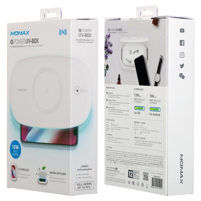 - Momax Q.Power UV-boks Sterilisator og trådløs lader