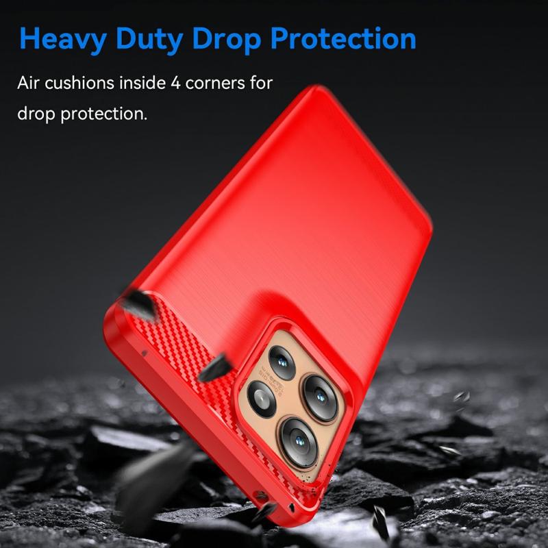 Det børstede TPU-dekselet beskytter din Motorola Edge 50 tilstrekkelig, samtidig som det gir den en flott stil, takket være karbonfibermønsteret på baksiden. Dekselet sikrer også overoppheting når du bruker Motorola Edge 50, med sitt varmespredningsdesign.