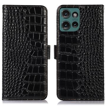 Crocodile Series Lommebok-deksel i Lær med RFID til Motorola Edge 50 Neo
