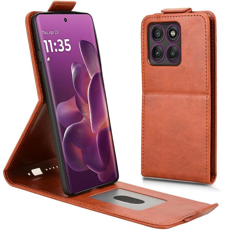 Vertikalt flip-etui for Motorola Edge 60 Pro - magnetisk lukking, stativfunksjon, kortholder