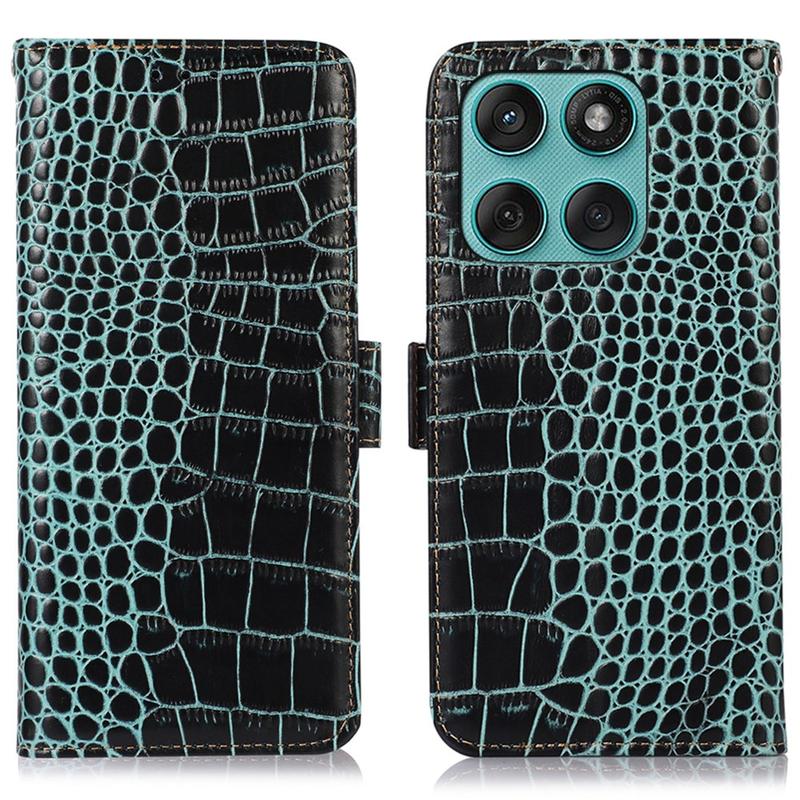 Crocodile Series Lommebok-deksel i Lær med RFID til Motorola Edge 60 Fusion