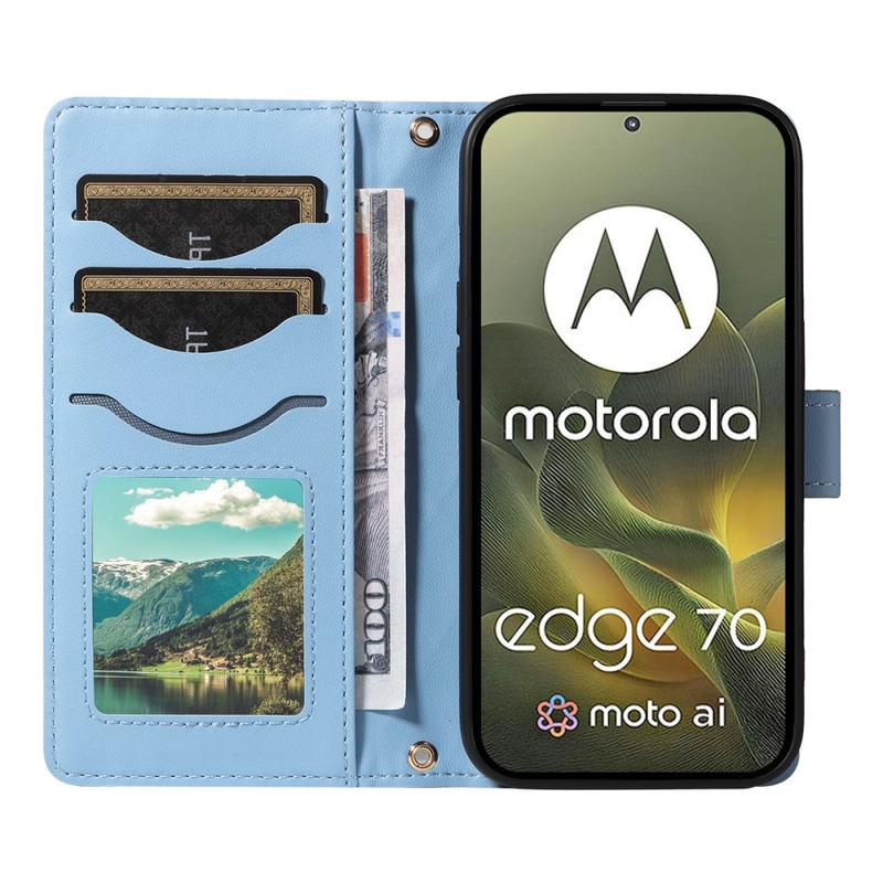 Luksuriøst vattert lommebokveske med skulder- og håndleddsstropp til Motorola Edge 70 - beskyttelsesdeksel med rombemønster