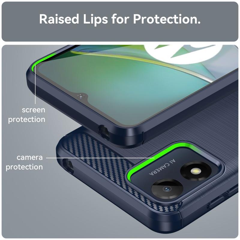 Det børstede TPU-dekselet beskytter din Motorola Moto E13 tilstrekkelig, samtidig som det gir den en flott stil, takket være karbonfibermønsteret på baksiden. Dekselet sikrer også overoppheting når du bruker Motorola Moto E13, med sitt varmespredningsdesign.