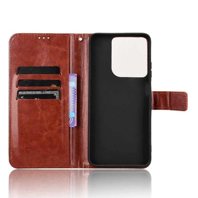 Dette lommeboketuiet er designet for bekvemmelighet, og har tre kortplasser og en sidelomme for å ta med kort og penger når du er på farten. Det sammenleggbare stativet gjør det enkelt å se på, noe som gjør det perfekt for både jobb og fritid. Den enkle åpningslåsen med to magnetiske lukkemekanismer på siden sørger for at eiendelene dine er godt festet.