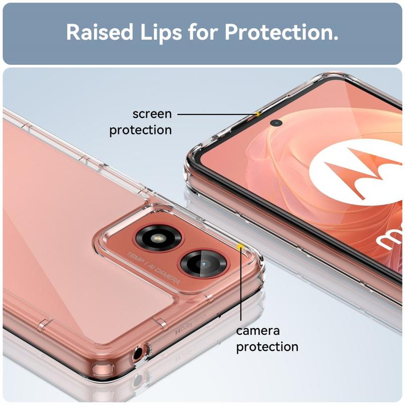 Dette tilbehøret bruker en kombinasjon av akryl og TPU for å holde smarttelefonen i best mulig stand. Samtidig ser forsterkede, støtabsorberende hjørner for å forhindre fallskader, mens den gjennomskinnelige designen viser den vakre utformingen av Motorola Moto G24 Power.
