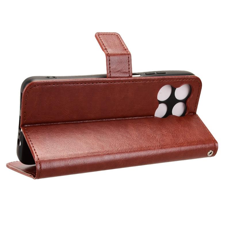 Navnet "Crazy Horse" kommer fra tradisjonelt hestesadelmakeri; den strukturerte overflaten er behandlet med voks som skaper en tofarget pull-up-effekt som etterligner fullnarvet skinn, samtidig som det er dyrevennlig, lettere og mer ripebestandig. Det gjør det ideelt for daglig bruk av telefontilbehør der både holdbarhet og stil er viktig.