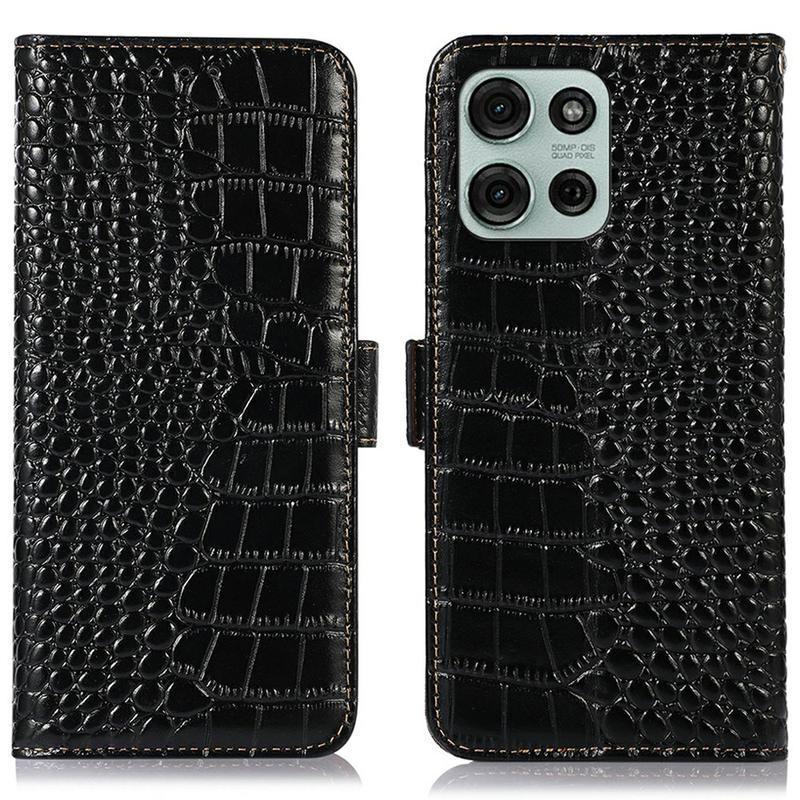 Crocodile Series Lommebok-deksel i Lær med RFID til Motorola Moto G75